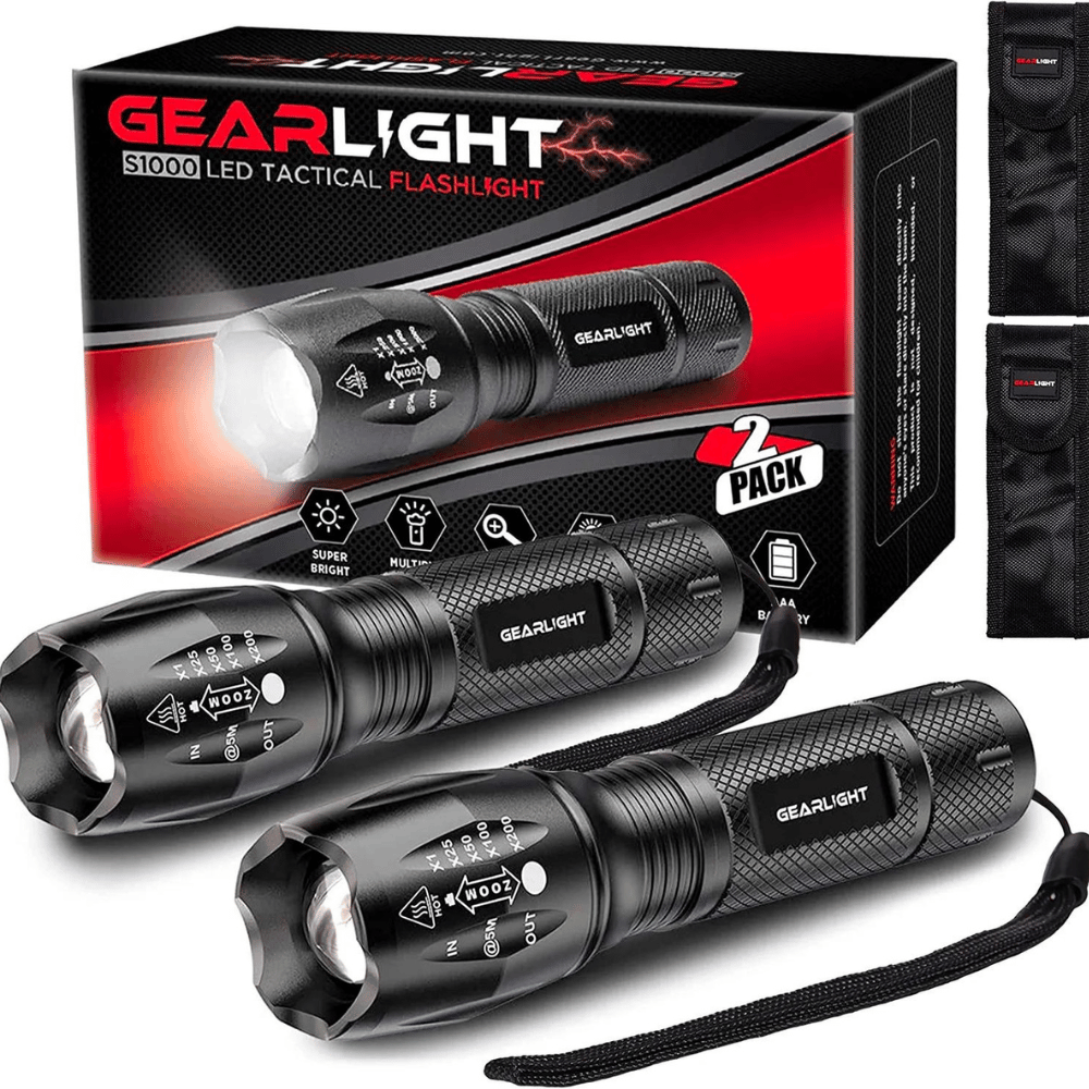 GearLight Flashlight 2pk Bright, Zoomable Tactical Flashlights High Lumens