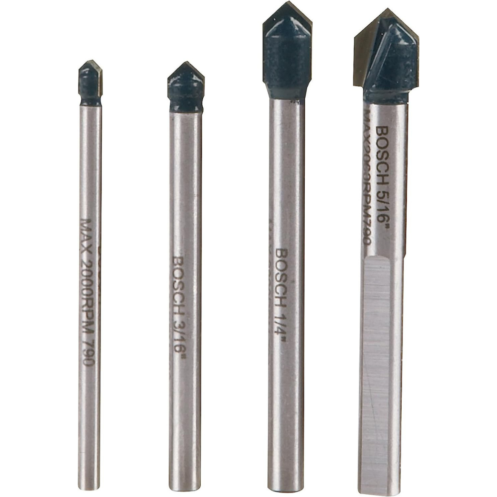BOSCH GT2000 4-Piece Carbide Tipped Glass, Ceramic and Tile Drill Bits Assorted Set for Fast Drilling in Glass and Tile Applications