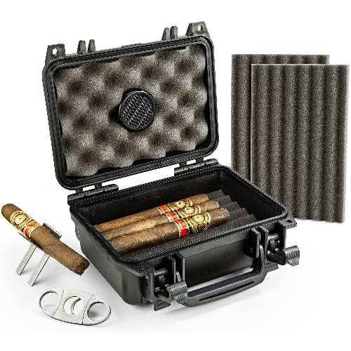 It's also crushproof, waterproof and airtight, which means that your cigars will be safe even if you drop them on the ground or into water. It holds up to 15 medium ring gauge cigars or 12 cigars that are 60 ring gauge. This makes it ideal for beginners as well as experienced cigar smokers.
