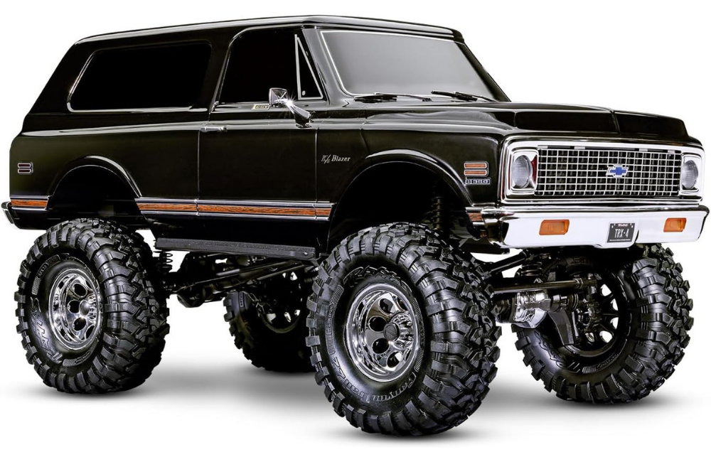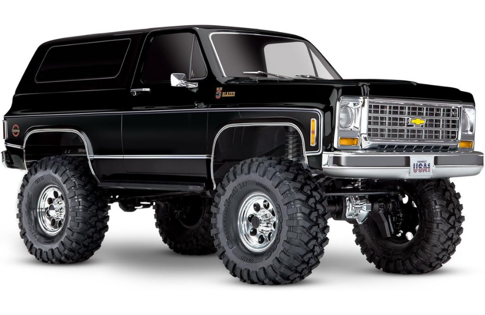 The Traxxas TRX-4 1/10 Trail Crawler Truck with 1972 K5 Blazer Body has been designed to offer scale performance and adventure. Thanks to its factory-installed Long Arm Lift Kit and oversize tires, the highly detailed replica body stands over an inch taller than the standard TRX-4 chassis. The extended wheelbase further enhances the TRX-4’s legendary off-road capability for better performance on the trail. To further the appearance, this truck uses the Traxxas Clipless Body Mounting for added scale realism. The TRX-4 High Trail Edition is the perfect vehicle for the driver who wants it all: extreme all-terrain capability, stunning scale looks, and extreme durability.