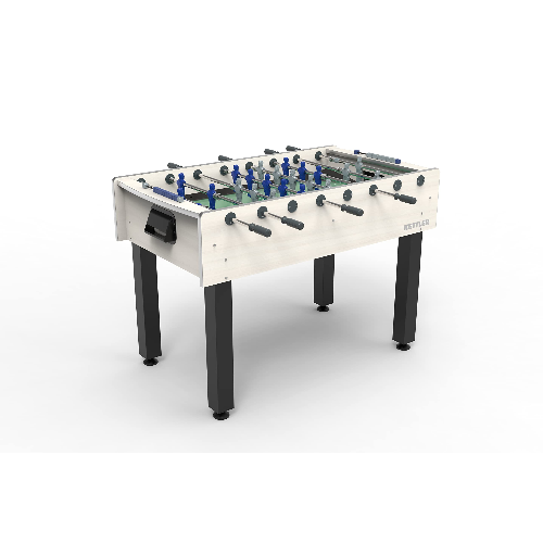 The Rene Pierre Match Blanc Foosball Table is a beautiful table that will look great in any game room. With its sleek design and metallic accents, this table is sure to impress.