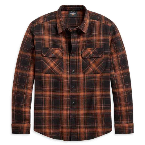 Harley-Davidson Men's Vintage Plaid Long Sleeve Woven Shirt, Orange