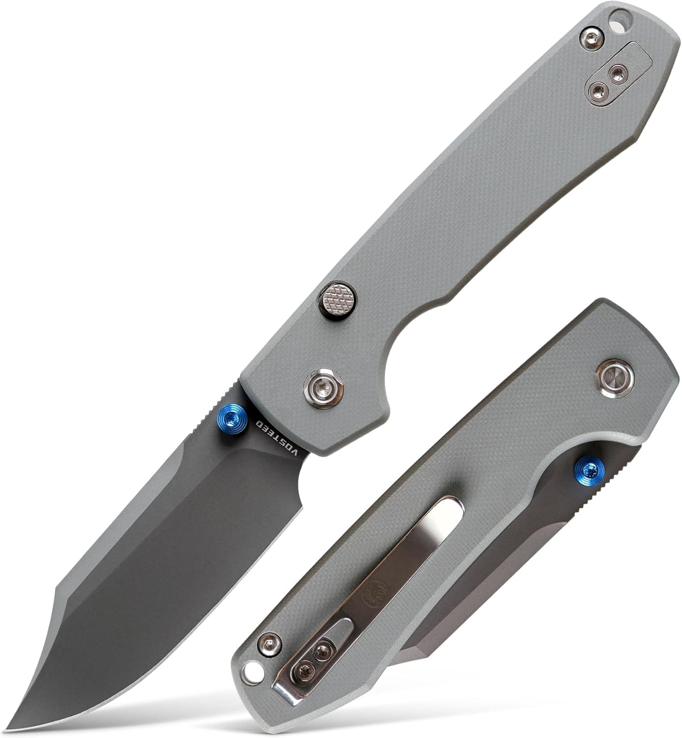 Vosteed Raccoon Bowie EDC Folding Pocket Knife - 3.25" 14C28N Destroyer Gray Blade, Top Liner Lock, Gray G10 Handle - Camping, Hiking Knives - A2918
