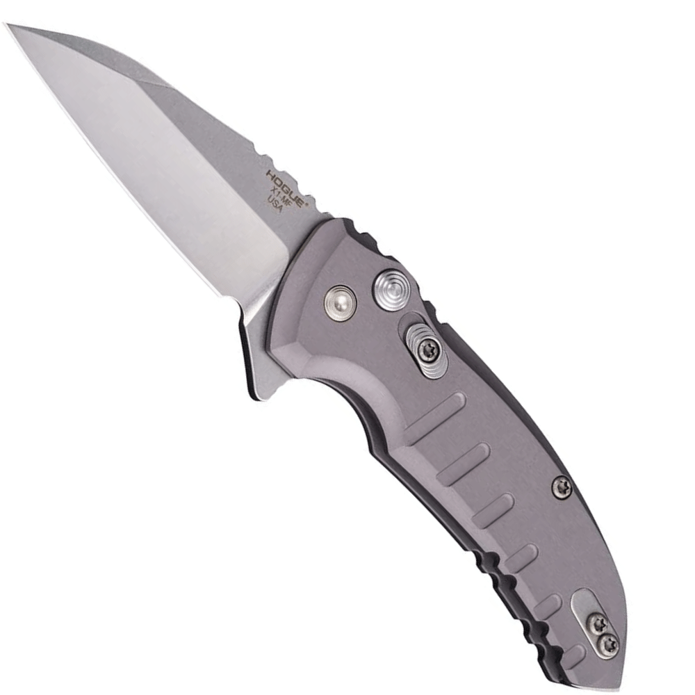 - Revolutionary button lock built with Hogue’s blade retention device allowing one-handed opening & closing without placing a hand in the path of the blade