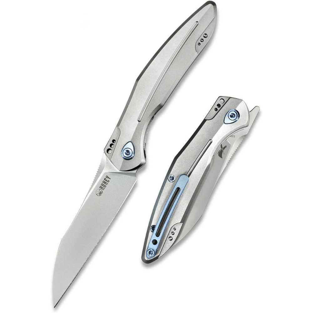 Kubey Barracuda KU299 Pocket Folding Knife, Front Flipper Titanium Folder with 3.38" Swedged Wharncliffe S30V Blade Ideal for EDC Outdoor Hunting and Camping