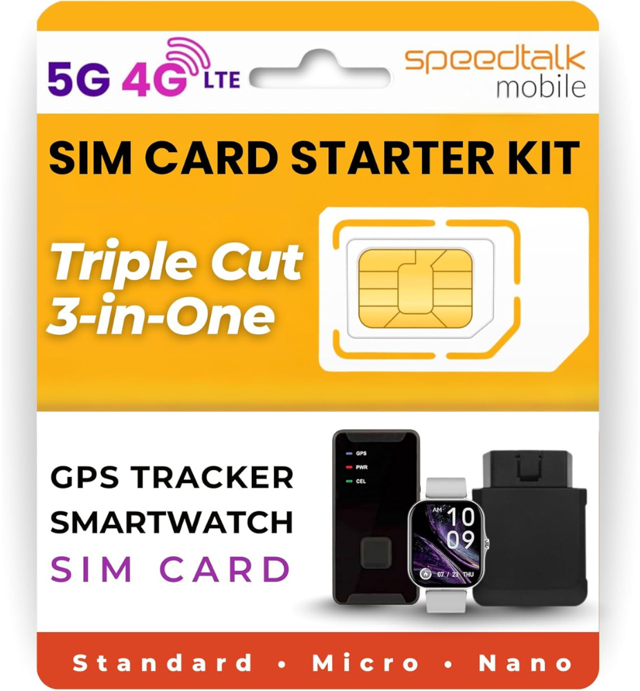 SpeedTalk Mobile GPS Tracker SIM Card Starter Kit, 3 in 1 Universal Simcard: Standard, Micro, Nano for Kids, Senior, or Pet Car Fitness Activity 5G 4G LTE Tracking Devices, No Contract