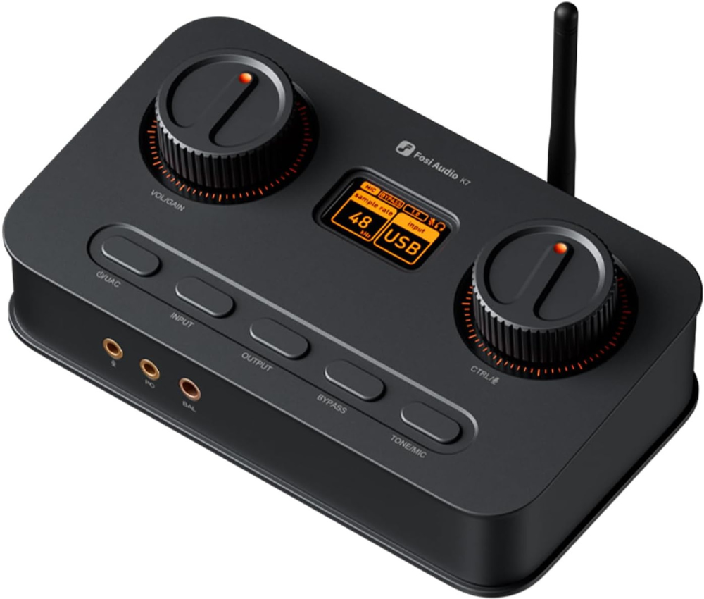 Fosi Audio K7 DAC Headphone Amp, Desktop USB C Digital to Analog Audio Converter for Workspace and Gaming PC PS5, Optical/Coaxial/Bluetooth aptX HD LL/Microphone Input, 3.5mm/4.4mm Balanced/RCA Output