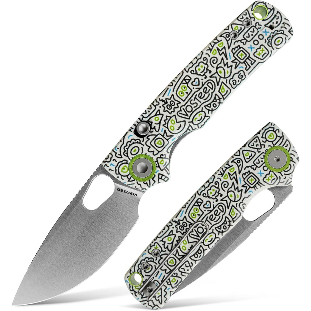 Vosteed Porcupine EDC Pocket Knife - 2.99" 14C28N Satin Blade - Top Liner Lock, Doodle Monster™ G10 Handle - Camping, Hunting Knives - A2620
