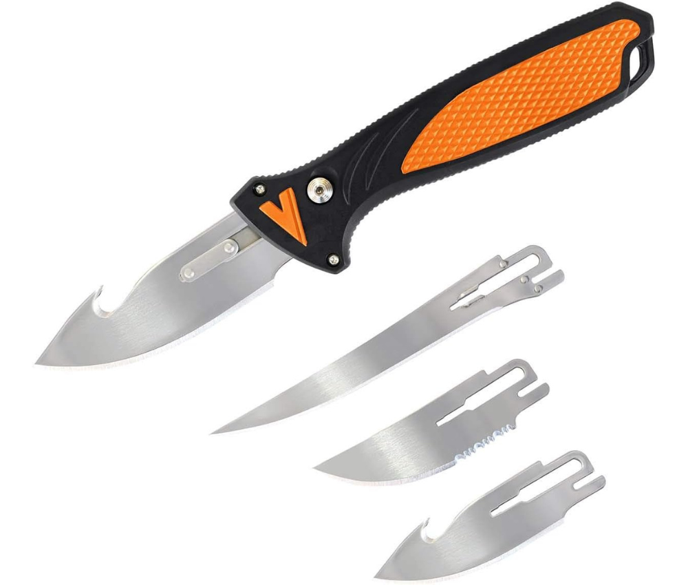 - Razor-Sharp Replaceable Blades – Includes 6 stainless steel 60A blades, each 2.75 inches long, for fast and precise skinning and field dressing of wild game