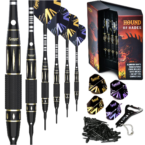 IgnatGames Darts Plastic Tip Sets - Soft Tip Darts for Electronic Dartboard - Plastic Tip Darts Set with Aluminum Shafts, O'rings, 100 Dart Tips and 16 Flights + Plastic Darts Wrench + Innovative Case 16g Hounds of Hades