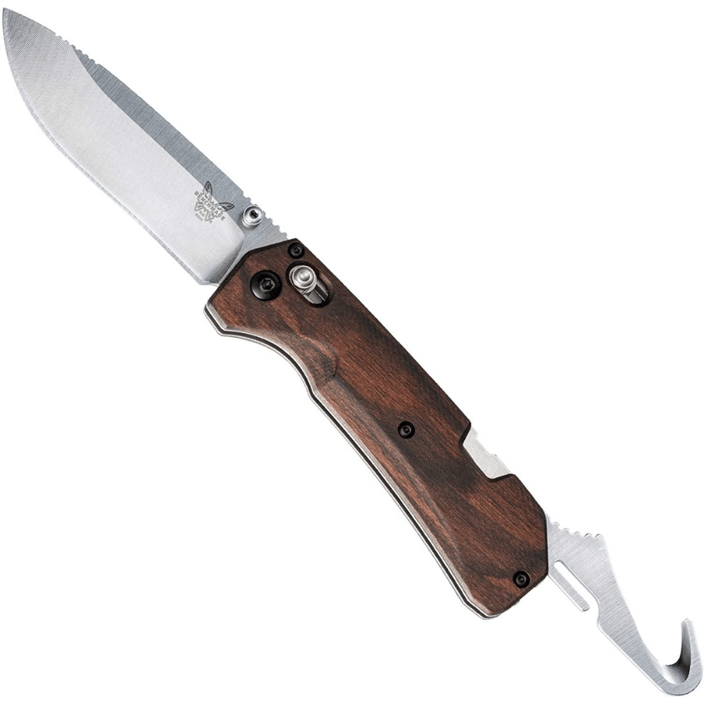 The perfect blade size and shape for just about any game cleaning chore, this Benchmade hunting folder features a folding satin finish gut hook that's only there when you want it.